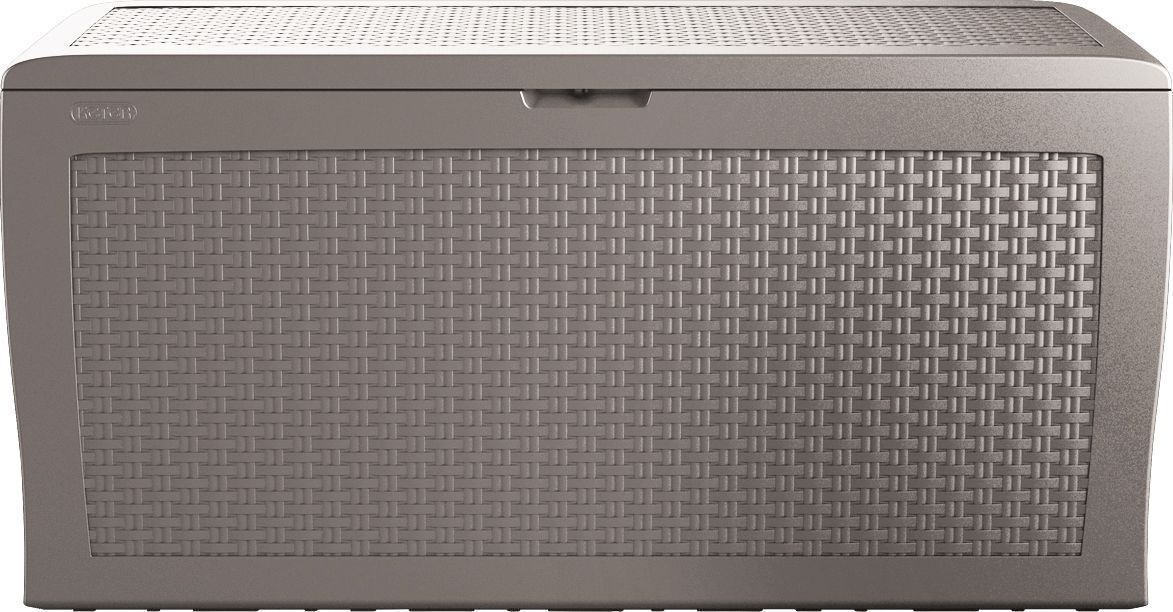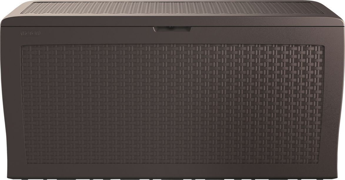 Новинка от компании KETER - компактный сундук под с внутренним хранением. Идеально подходит ко всем комплектам мебели в коричневом и сером цвете, а так же отлично сочетается с другой мебелью.