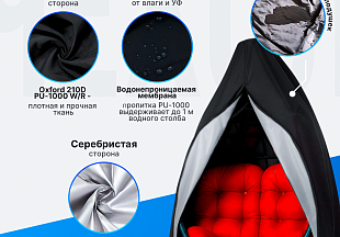 Чехол 200х308 для 2х местного кресла-кокон 230х200 с молнией черный + серебристый
